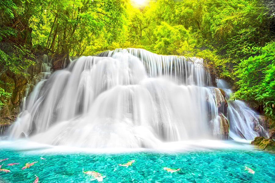 Ağaçlar İçerisinde Şelale Mutfak Duvar Kağıdı