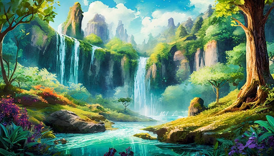 Doğa Manzaralı Duvar Kağıdı, Şelale Oturma Odası Duvar Kağıdı