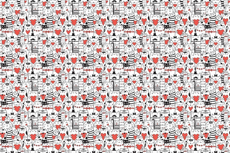Kırmızı Kalpli Kediler Çocuk Odası Duvar Kağıdı