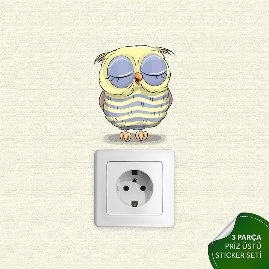 Priz Üstü 3lü Sevimli Baykuşlar Sticker Seti, Çocuk Odası Bebek Odası Duvar Çıkartmaları